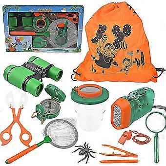 مجموعة أدوات المستكشف الخارجية ومجموعة Bug Catcher مع مناظير ، مصباح يدوي ، بوصلة ، عدسة مكبرة ، شبكة فراشة وحقيبة ظهر لفتاة الأولاد من سن 3 إلى 12 عاما