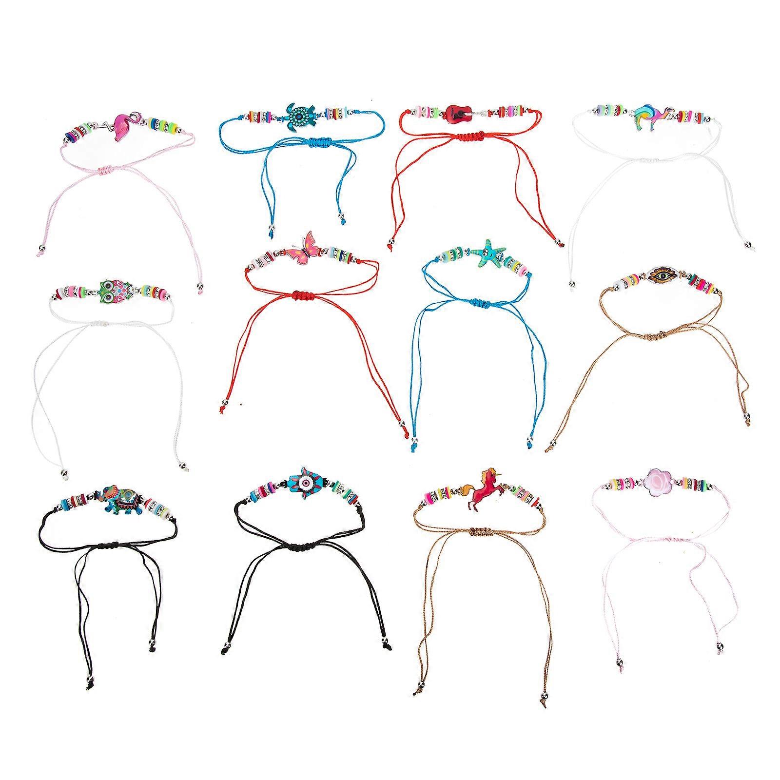Adjustable Animal Charm Bracelets Set 12pcs Stackable Polymer Clay Jewelry for Birthdays and Daily Wear