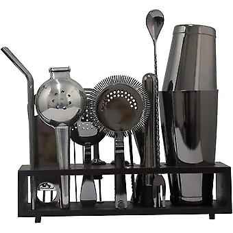 COMPLETE BAR SET Achieve a smooth cocktail with completely integrated ingredients. Set includes Boston shaker(18+28Oz), double jigger of 30/45 ml, muddler(20cm), mixing spoon(30cm), 2 liquor pourers, lemon squeezer, wine opener, ice pick, 3 straws, 4 fruit picks, Julep strainer, ice tong Hawthorne strainer and stand.COOLEST WAY TO DISPLAY YOUR BAR TOOLS Eco-friendly Oval bamboo stand, expertly designed to keep your barware tools organized and accessible at all times.EASY TO CLEAN The set is also extremely easy to clean by hand. Simply rinse with water and soap, and the set will be gleaming once again. SOLID AND DURABLE Heavy-duty and high-grade, cocktail shaker set. This entire bar accessories kit is made of stainless steel alloy: 18/8 stainless steel. Worry not. its all dishwasher compatible, so forget about wear and tear with these professional bar supplies.REST ASSURED PURCHASEIf you have any issue with our products, please don't hesitate to contact , we will try our best to find a satisfactory solution for you in time.Jt like the rest of s products, this boston shaker set is backed by a trted guarantee to high quality, pl excellent and reliable ctomer service. Throwing cocktail party to mixing your favorite drinking in your home, our bartending set is a mt-have. That is a great way create cocktails or cocktails entertaining clients and friends at home or parties. Not only for happy, but also for entertainment. The beautiful finish on these Boston shakers will add some flash to your bar whether home or commercial The Boston shaker contoured to fit perfectly in the hand for easy shaking. The muddler will allow you to crh fruit and herbs at the bottom of your glass, releasing their flavor. The strainer is made of high denisty spring, and the spring is easily detachable. The jigger flip for different measurements and markings on the inside30ml on one side and 45ml on the opposite. Double Cocktail jigger comes with interior measurement 10ml, 20ml, 15ml and 30ml. The liquor pourers fit on most liquor bottles for home bar or kitchen, make pouring smooth and easy. The shelf material is made of bamboo, smooth and easy to clean. Our Premium Bar Tool Set Includes: Cocktail shaker x 1Muddler x 1Mixing spoon x 1Hawthorne strainer x 1Cocktail Jigger x 1Julep strainer x 1Stand x 1Liquor pourer x 2 Wine openex 1Lemon squeezer x 1Ice pick x 1ice tong x 1Straws x 3 Fruit picks x 4 Product Details Material:18/8 Stainless Steel and polyethylene Colors Available:Silver/Black/Gold/Copper Size Details: Cocktial Shaker18+28Oz Jigger30/45ml---10ml/20ml---15ml/30ml Mixing Spoon:11.81inch Muddeler:7.87inch * Due to manual measurement, please kindly allow 1-2cm discrepancy. * Do not drop it;Do not expose it under the sun;Clean with warm water and soap.