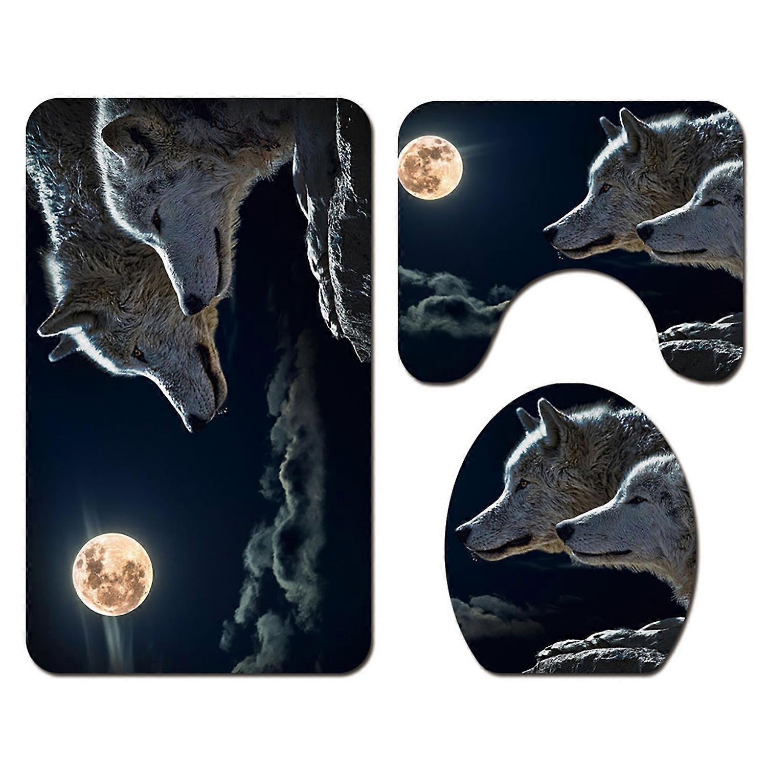 3PCS Night Theme Shower Waterproof Non Slip Bathroom Mat Rug Toilet Lid Cover Set