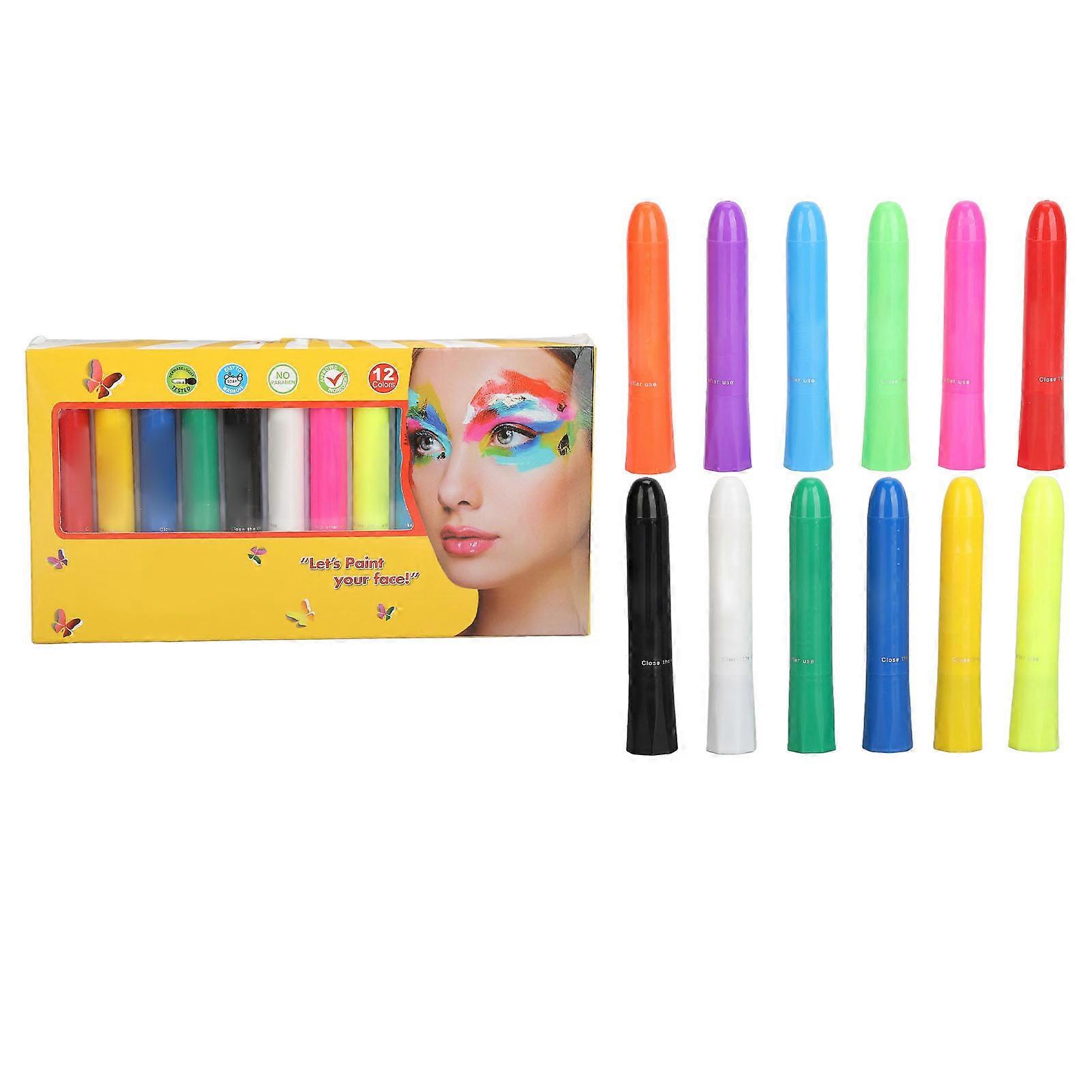 Face Paint Crayons Set 12 Colors, Vibrant Facial Painting Sticks for Kids, Easy to Remove Halloween Makeup, Non Toxic Body Art Kit