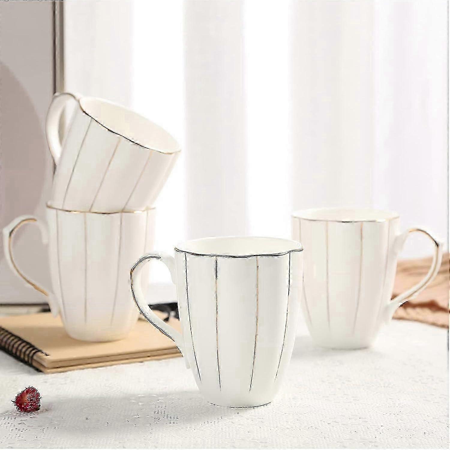 Coffee Mug Set of 4, Luxury British Design with Handcrafted Golden Trims, 1st-Class Bone-china White and Gold Cup Set for Coffee, Tea&Milk