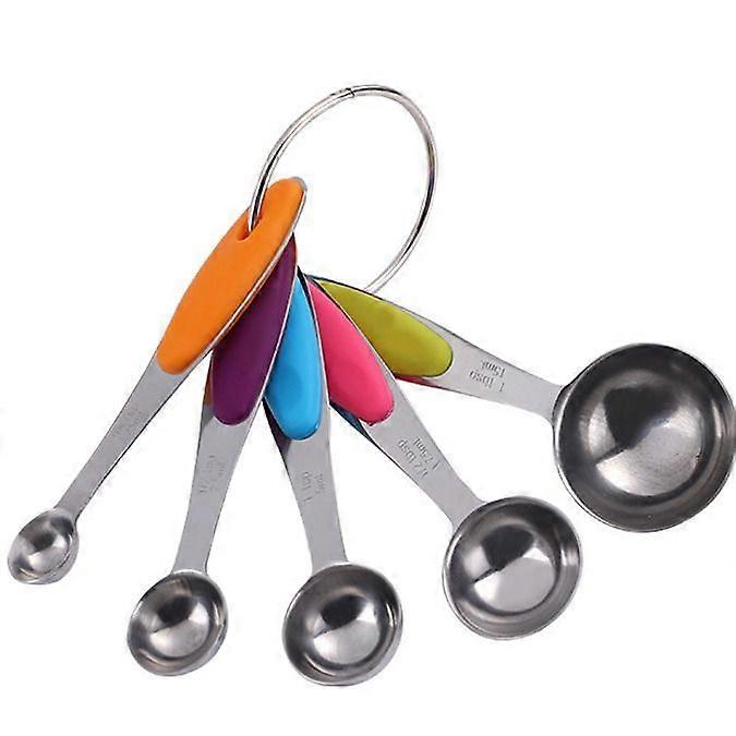Name: Stainless Steel Measuring SpoonsMaterial: 430 Stainless Steel + SiliconeCraftsmanship: Brushed FinishNet Weight: 437.5gPackaging: Color BoxFunction: For measuring liquids, solids, and powders in bakingFeatures: 1. Versatile Design: Designed for a variety of cooking and baking tasks, it's an ideal choice for hobbyists and chefs. 2. Practical Measuring: The measuring spoons in this set are engraved with markings, ensuring you can measure every time you cook or bake. Say goodbye to guesswork and enjoy the precision our practical measuring spoons provide. 3. Easy to store and keep your kitchen organized and efficient with this practical, multi-purpose tool set. 4. Stainless Steel: Made of stainless steel, these measuring spoons are not only stylish but also durable. Their sturdy construction ensures they can withstand daily use in the kitchen. 5. Colorful: The vibrant colors of these measuring spoons add a touch of flair to your culinary adventures. Enjoy the joy of cooking and baking with this stylish and practical multi-purpose measuring spoon set!Package Contents: 1*10-piece set of colorful handles (in a colorful box).Note: 1. Due to different monitors and lighting effects, the actual color may vary slightly from the image.2. Due to manual measurement, please allow 1-3 cm deviation.
