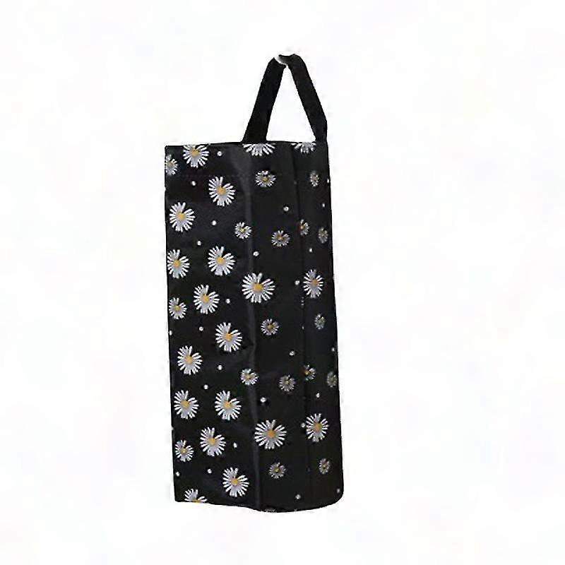 10x34cm Washable Plastic Trash Bags Set of 1 - Collapsible Wall Mount for Kitchen, Bathroom, Living Room, Office, RV - Black Daisy Design