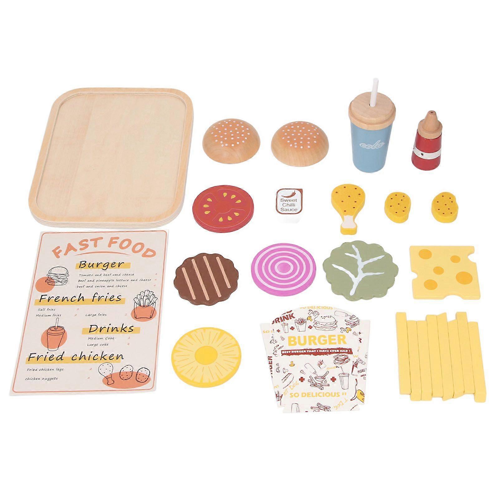 Wooden Play Fast Food Hamburger Set Realistic Educational Kitchen Accessories Toy for Boys Girls