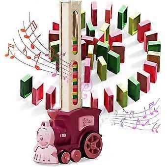 Domino Toddler-initiated Train Toy Set 60pcs dominoes, Electric Automatic Building and Stacking Train Toy(Red)