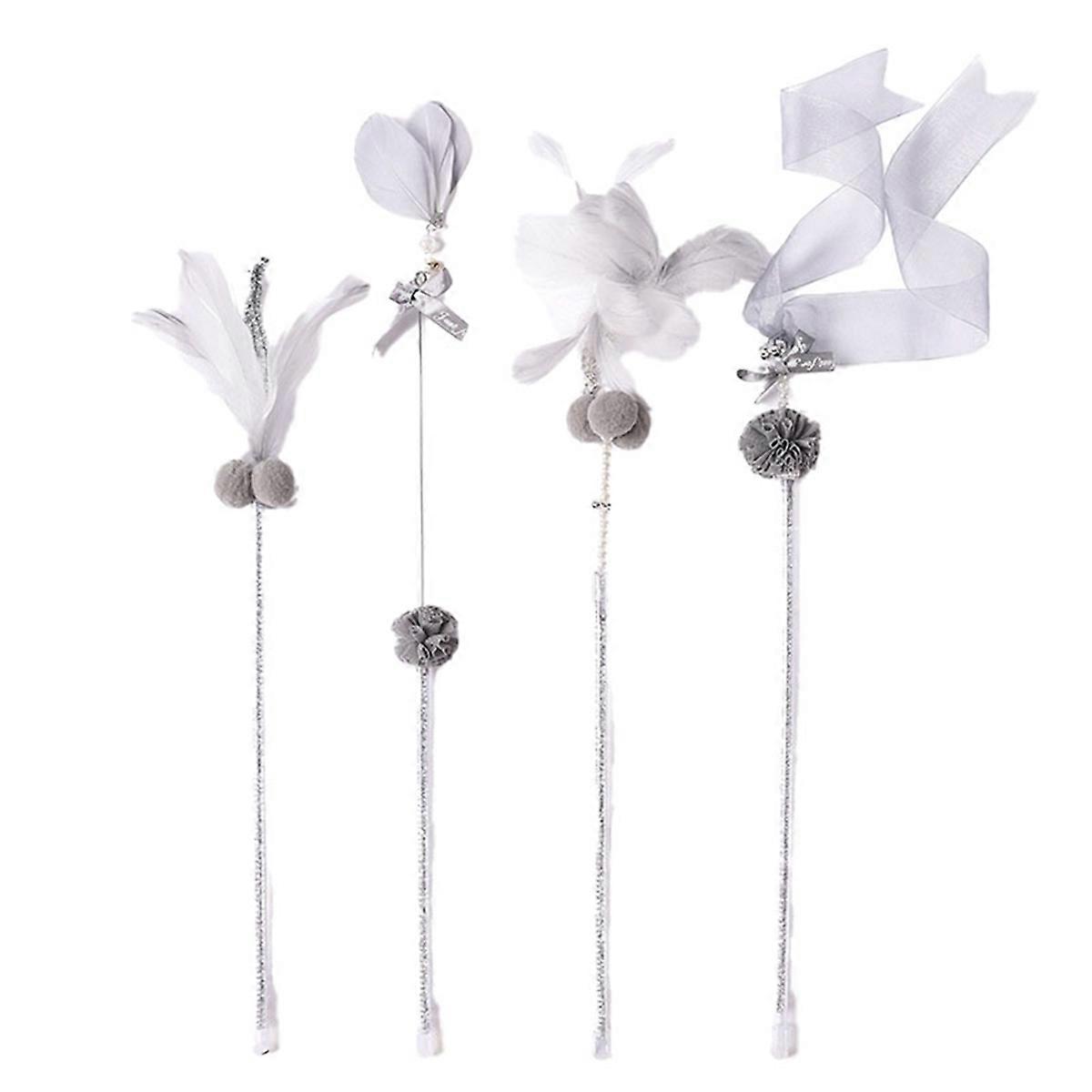Cat Stick Ribbon Bite Cat Stick Bell Toy Set Cat Toy 4PCS
