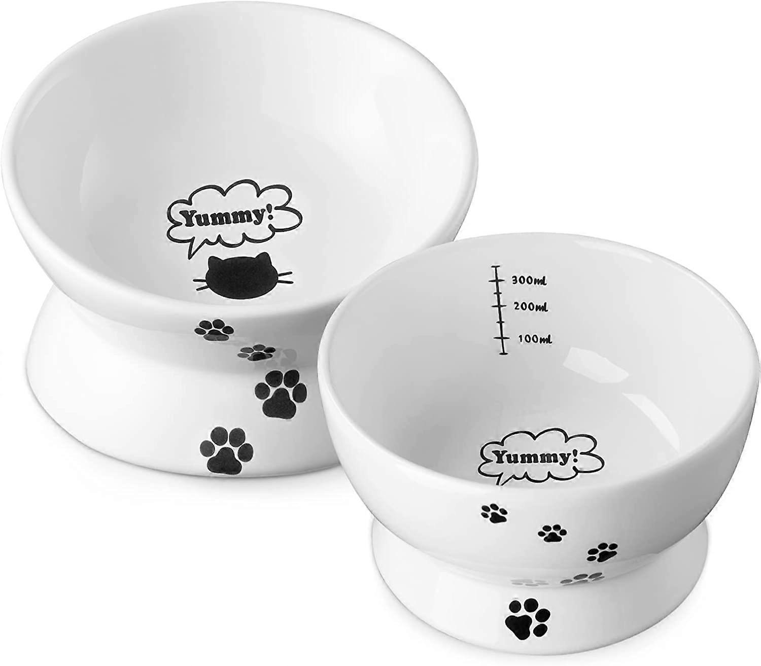 Raised Cat Food and Water Bowl Set, Tilted Elevated Cat Food Bowls No Spill, Ceramic Cat Food Feeder Bowl Collection, Pet Bowl for Flat-Faced Cats and