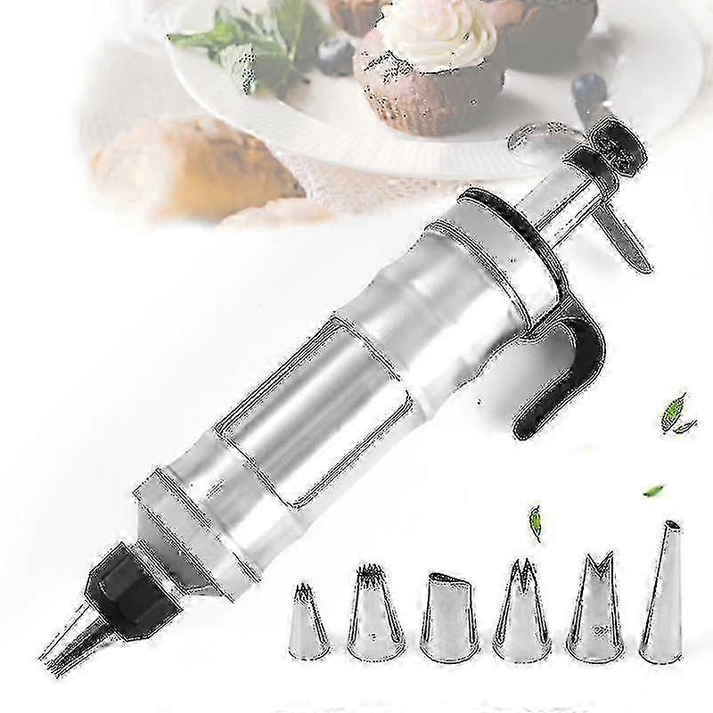 Icing Decoration Gun Set,stainless Steel Dessert Decorator Cake Decorating Tool With 6 Pcs Piping Icing Nozzles,kitchen Baking Pastry Tool(black Edit