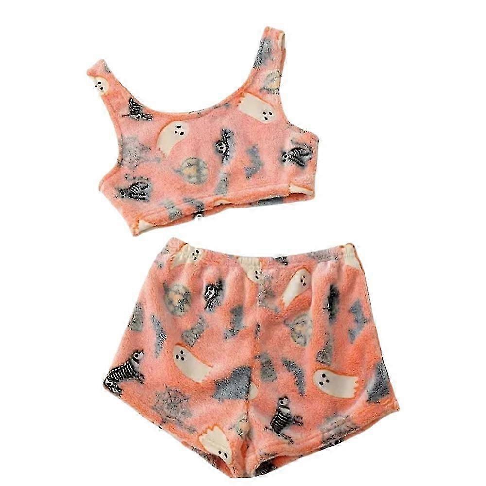 Spooky Vest Pajama Set, Womens Halloween Print Glow In, Luminous Pajamas Sets