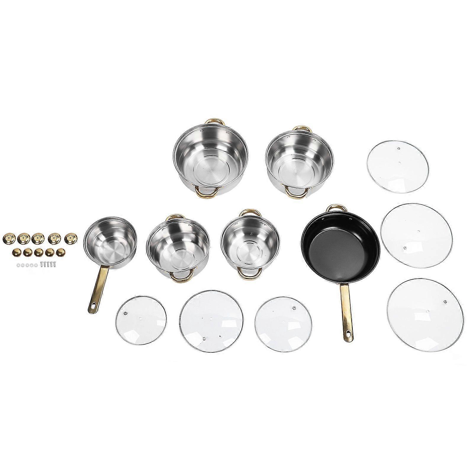 Cookware Set Stainless Steel Rustproof Stick Proof Safe Pan Pot Set for Home Kitchen Restaurant Gold Handle