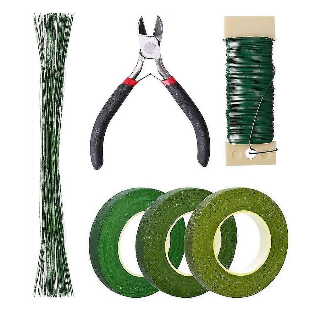 Floral Arrangement Kit, Floral Tape And Floral Wire With Cutter,green Floral Tape 22 Guage Floral Stem Wire 26 Gauge Green Floral Wire For Bouquet Ste
