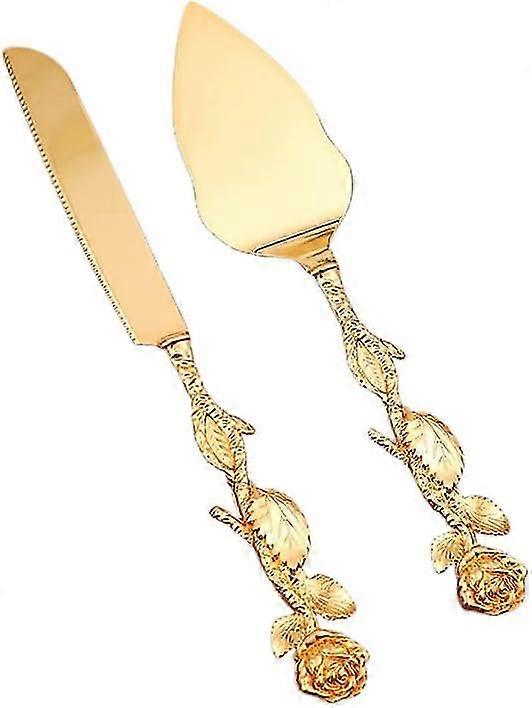Cake Cutting Set for Wedding Cake Knife and Server Set Cake Cutter Gold Cake Cutting Set for Wedding Birthday Party Kitchen Cutting Serving Desserts -