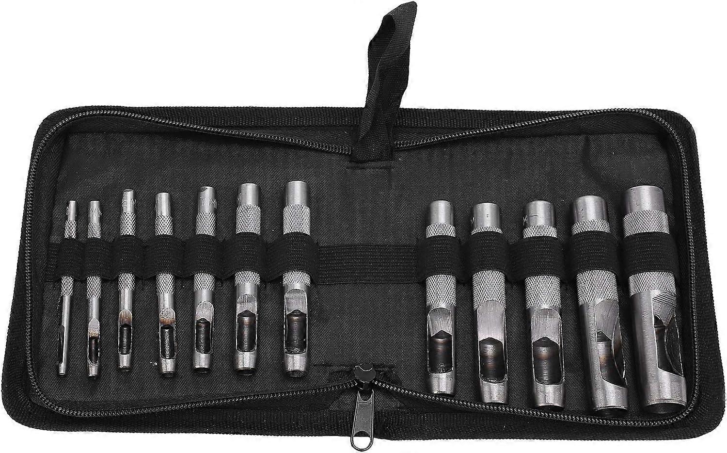Belt Punch Set, Leather Goods Punch, Round 12 pieces 3-16 mm Carbon Steel Multifunctional