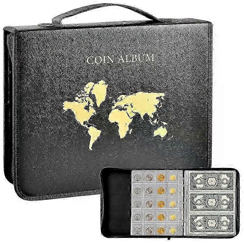 Portable Coin Collection Set 200 Coins 30 Paper Money Panels PVC Transparent Philatelic Book Album With Zipper Protection