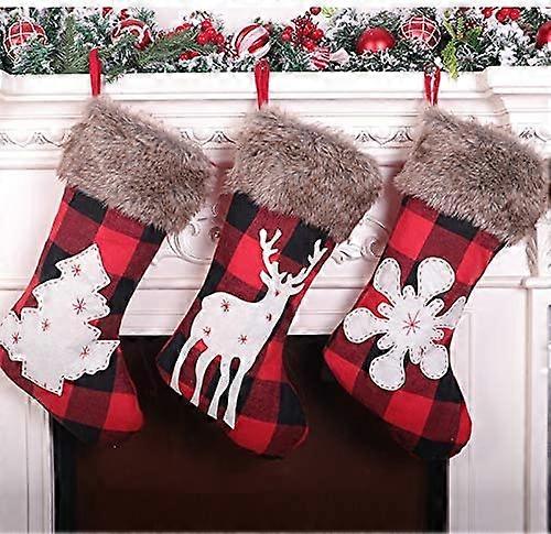 Christmas Stockings Set of 3 Buffalo Red Plaid with Soft Faux Fur for Family Fireplace Hanging Large Xmas Stockings Decorations Holiday Season Decor 3