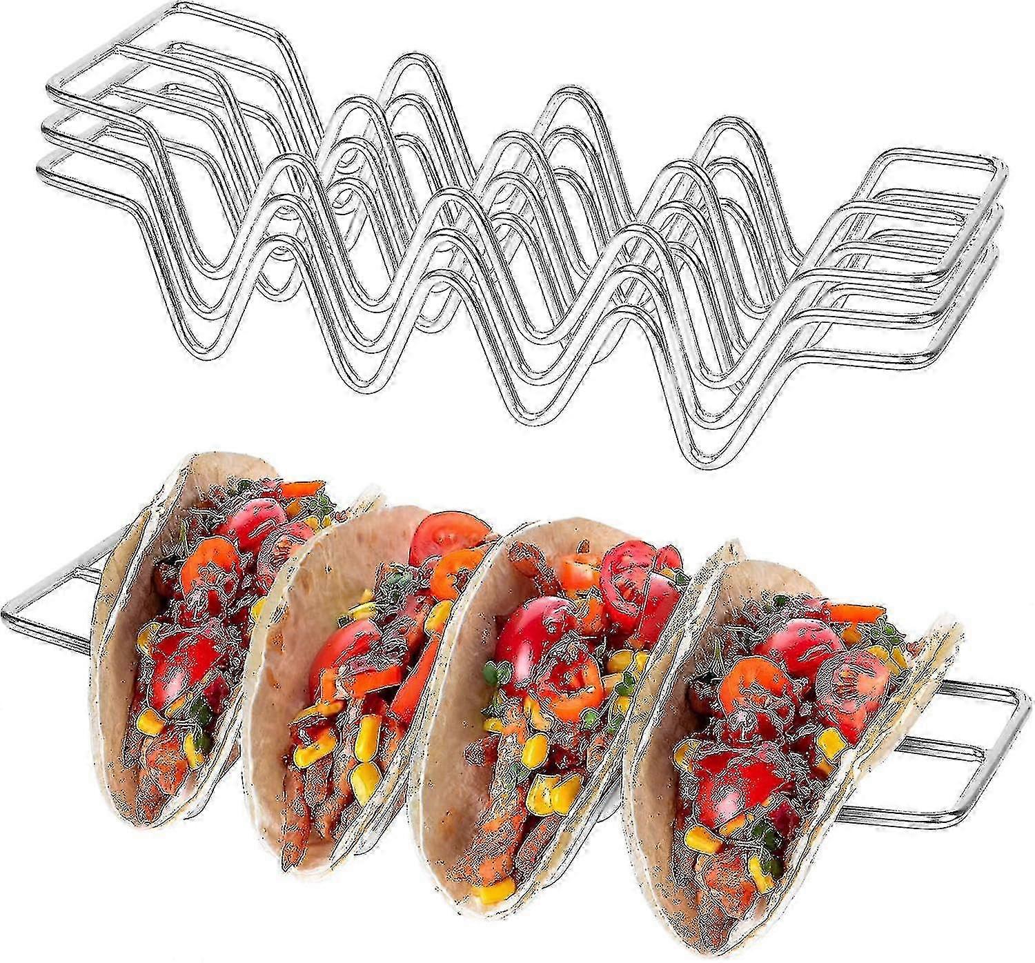 Taco Holders Set Of 3,stainless Steel Taco Shell Holder Stand,taco Tray Plates For Taco Bar Gifts Accessories,holds 4 Tacos Each,oven Safe For Baking
