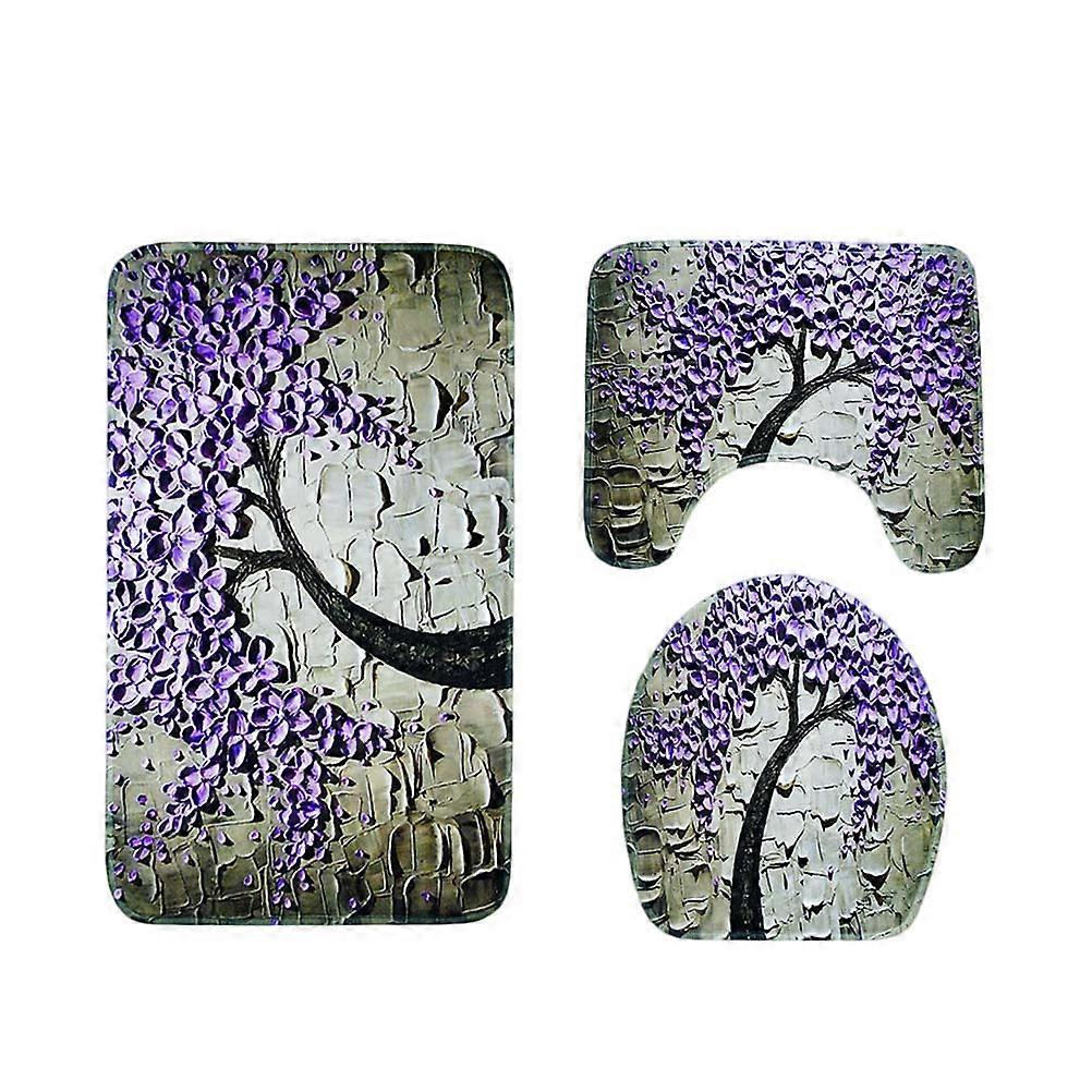Bathroom Mat Set Antiskid Washroom Carpet Mat Toilet Seat Lid Cover Rectangular Flannel Water Absorption 3Set Purple