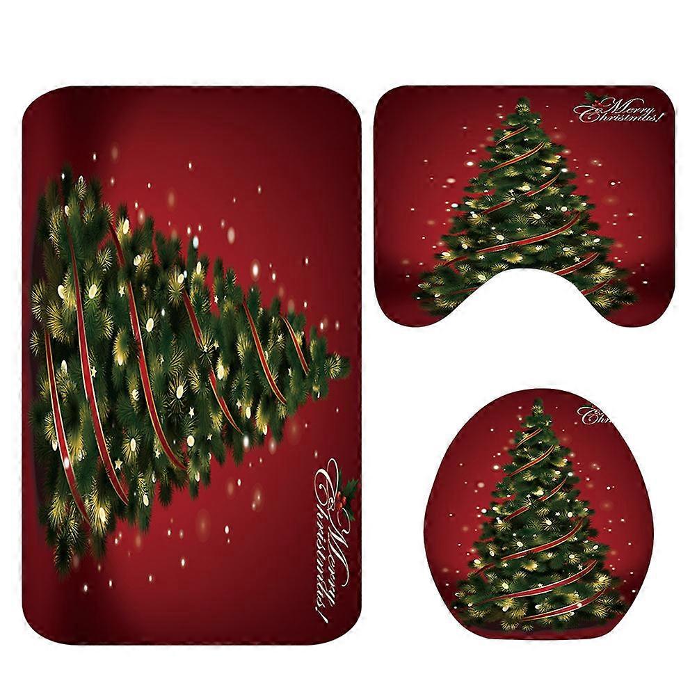 Christmas Pattern Bath Mat Set with Pedestal Rug and Toilet Lid Cover – Water Absorbent, Non Slip Floor Mat for Holiday and Home Decor Use