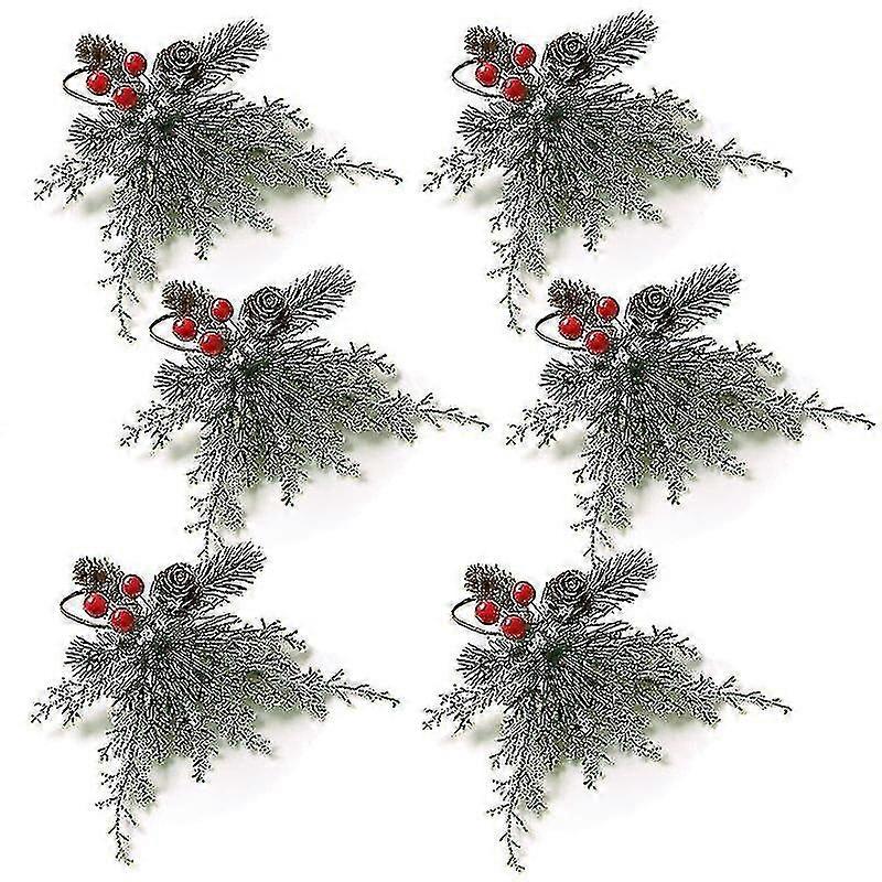 The napkin button is composed of artificial pine needles, pine cones and red berries, perfect for Christmas dinner parties, practical and artistic.Wide Applicability: Our napkin rings are suitable for birthday parties, wedding receptions, baby showers, anniversaries, dinner parties, Christmas and other festivals. Also, these napkin rings can be used in homes, offices, hotels, restaurants, bars, cafes, shops and many other places.Colour:Photo ColorMaterial:plasticPackage Contents:6x Napkin RingsOnly the above package content, other products are not included.Note: Light shooting and different displays may cause the color of the item in the picture a little different from the real thing. The measurement allowed error is +/- 1-3cm.