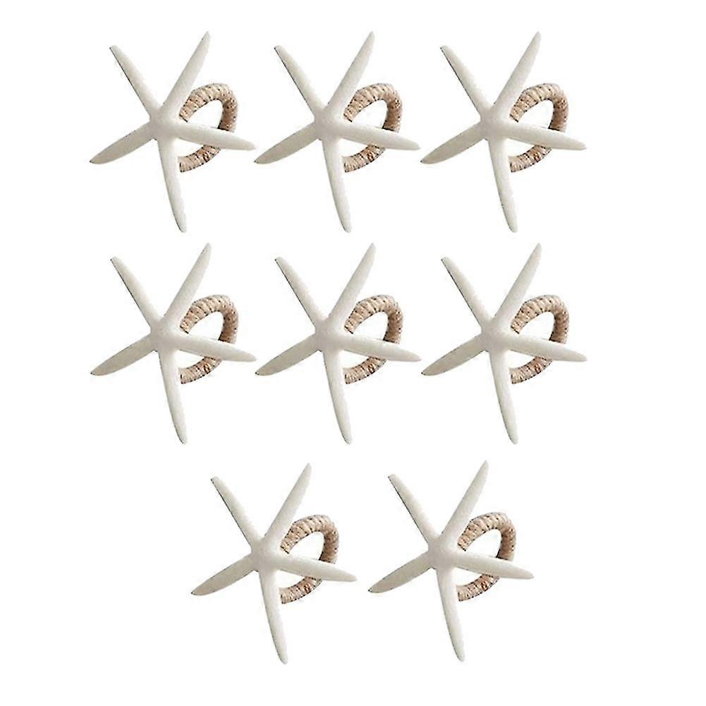 Handmade Starfish Napkin Rings Set Of 8, White Faux Sea Star Napkin Ring Holder For Wedding, Party, Dining Tables