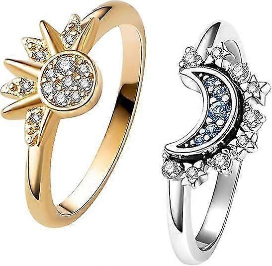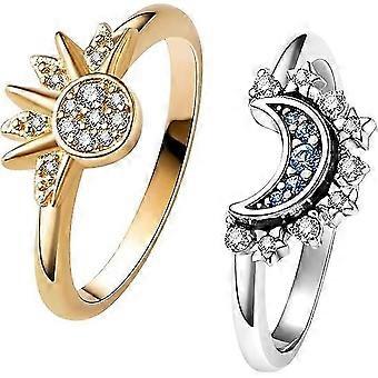 Sun And Moon Ring Set, Sparkling Sun Ring Blue Moon Ring Friendship Promise Ring, Stackable Celestial Rings, Gift For Women Girls