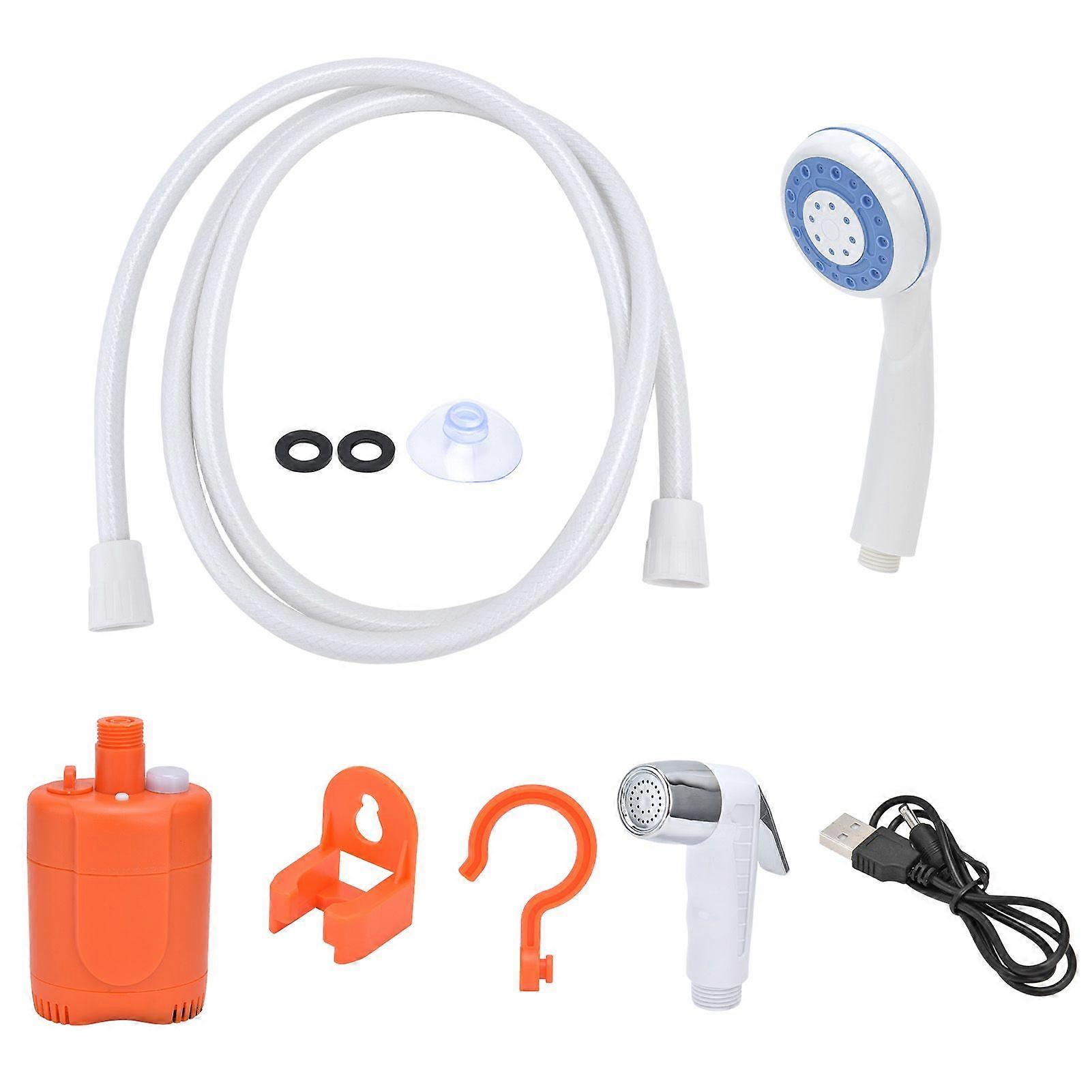 Portable Outdoor Shower Set Camping Shower Pump Handheld Sprayer for Hiking Traveling USB ChargingOrange