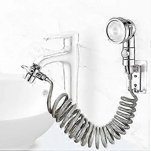 Bathroom Sink Shower Head Set, Bathroom Hand Shower, Telescopic Hose, Perfect for Washing Hair or Cleaning Sink (Faucet Not Included) (Silver)