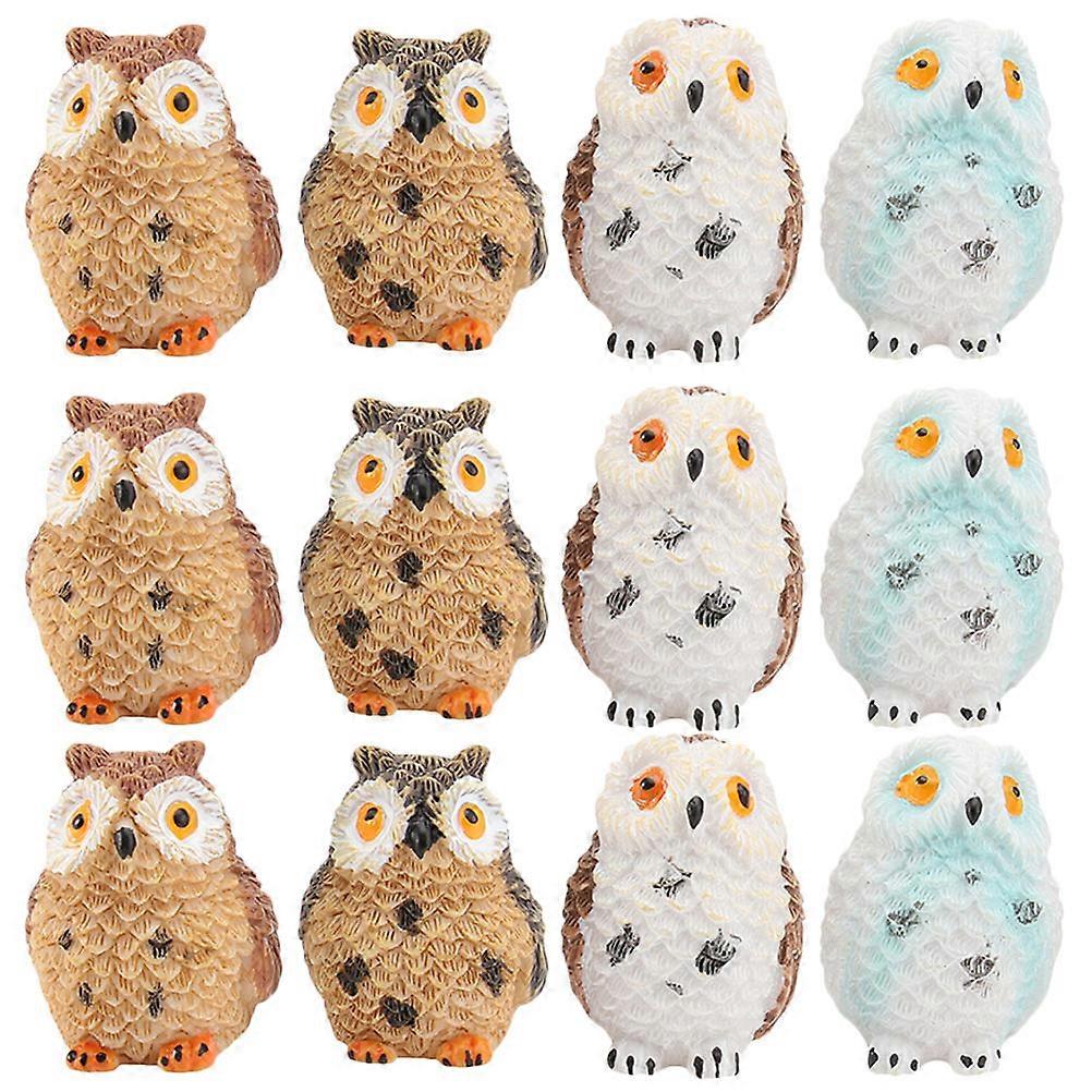 Creative Owl Decorative Ornaments Set of 12 in Assorted Colors for Home Decor Made of Resin