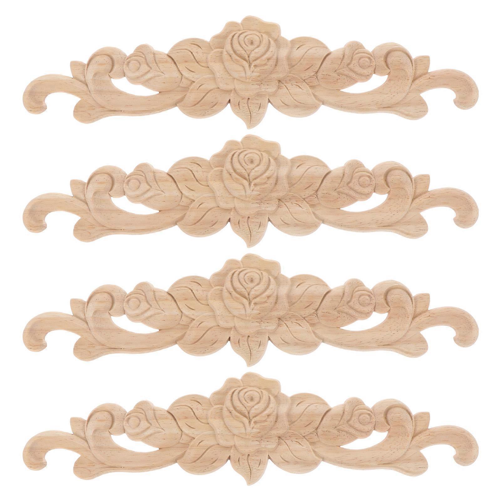 Rose Carved Wood Applique Set for Furniture Decor – Natural Rubberwood Floral Ornament for Home Living Room Cabinet Bed Decoration – Easy to Install