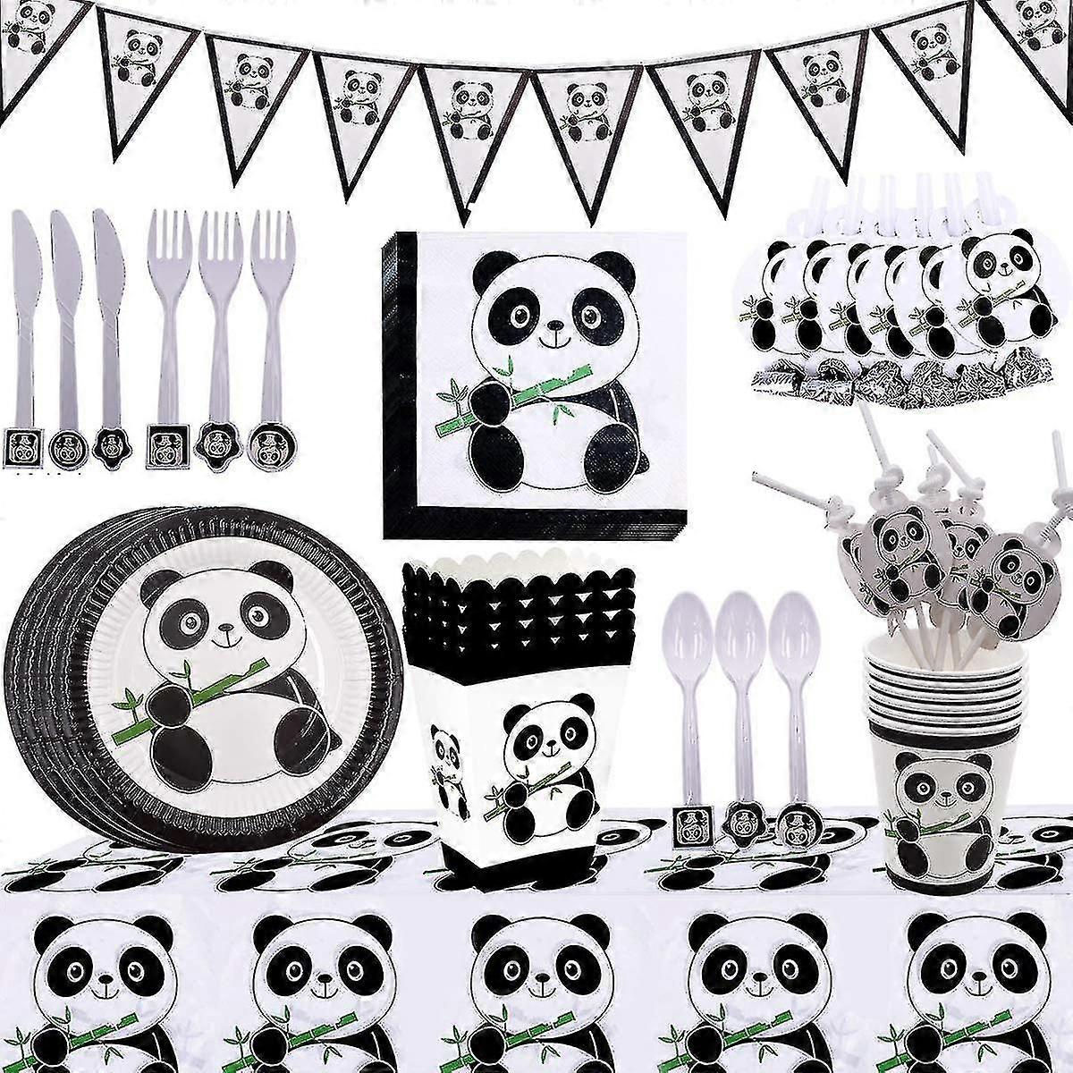 Panda Party Decorations Set, 94pcs Panda Paper Cake Plates And Panda Baby