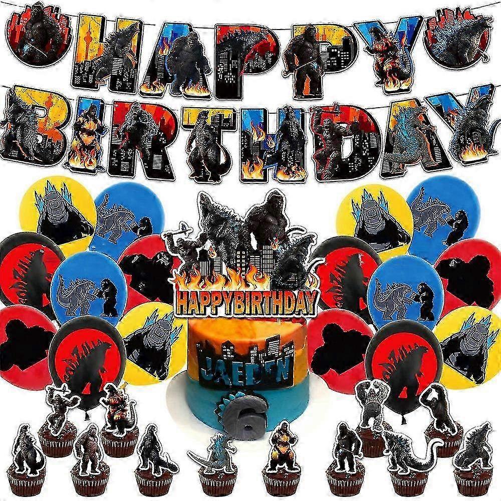 Godzilla vs Kong Themed Birthday Party Decorations Set with Balloons, Banner, Cake & Cupcake Toppers, Gift Supplies Kit