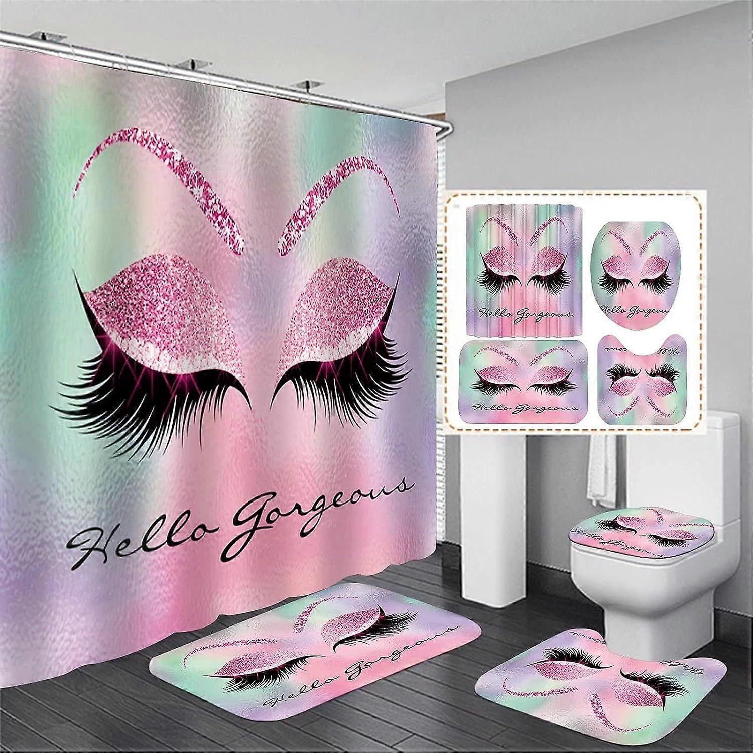Pretty Eyelash Shower Curtain Set - Bling Purple Hello Gorgeous Bathroom Decor