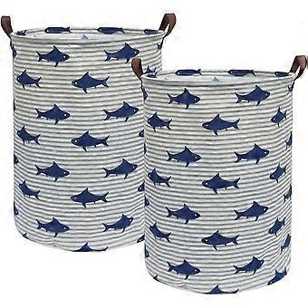 Laundry Hamper Set Of 2 Collapsible Laundry Hamper, Canvas Fabric Laundry Hamper Toy Storage Basket With Handles For Home (shark)