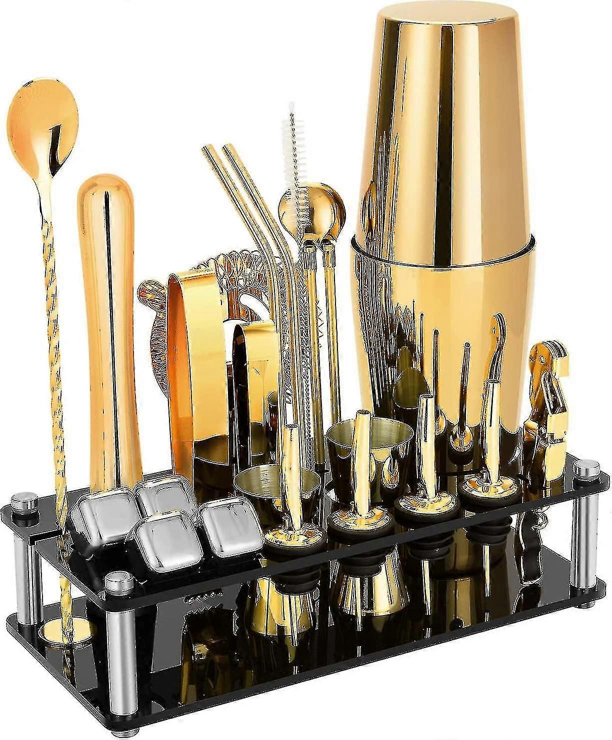 Cocktail Shaker Set, 23-piece Boston Stainless Steel Bartender Kit With Acrylic Stand & Cocktail Recipes Booklet, Professional Bar Tools For Drink Mix