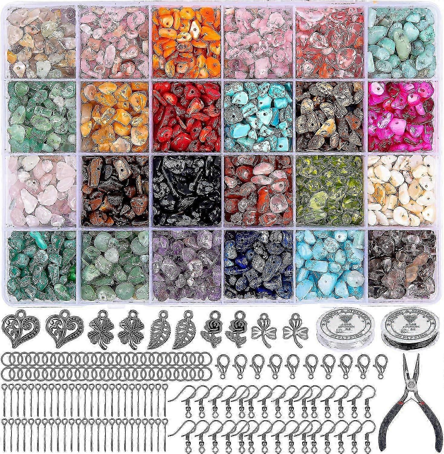 Jewellery Making Set, 24 Colours Natural Gemstone Beads, 5-7 Mm Stone Beads, 1073 Pieces Rings Diy Kit For Diy Jewellery Necklace Bracelet Earring