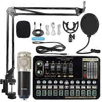 مجموعة صوت استوديو تسجيل احترافي لميكروفون كاريوكي خارجي مباشر بطاقة صوت أسود فضي