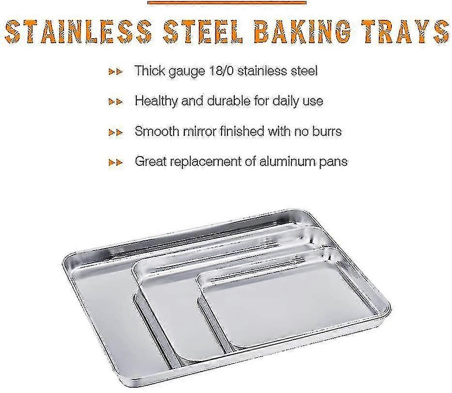 Baking Tray Set Of 3, Stainless Steel Baking Tray, Professional, Non-toxic
