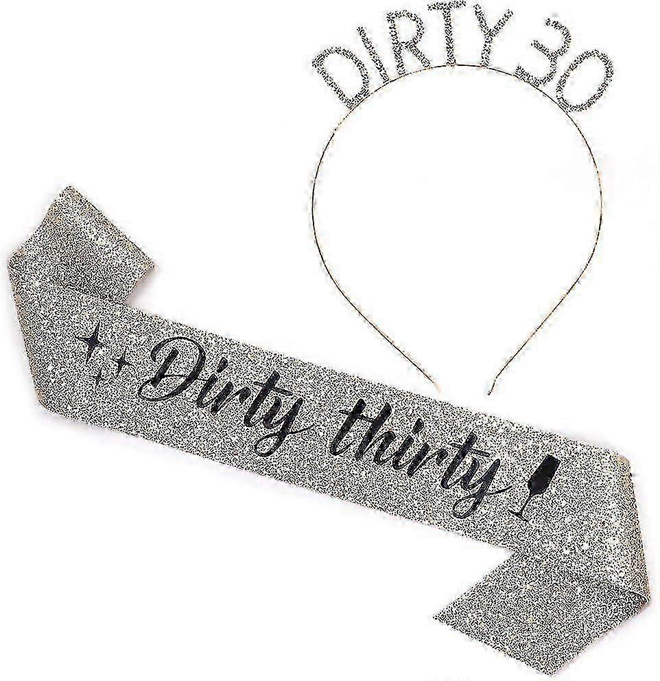 Dirty Thirty Belt And Rhine-drill Headband Set - 30th Birthday Gift Ladies Birthday Belt Birthday Party Supplies (gold Glitter/black)