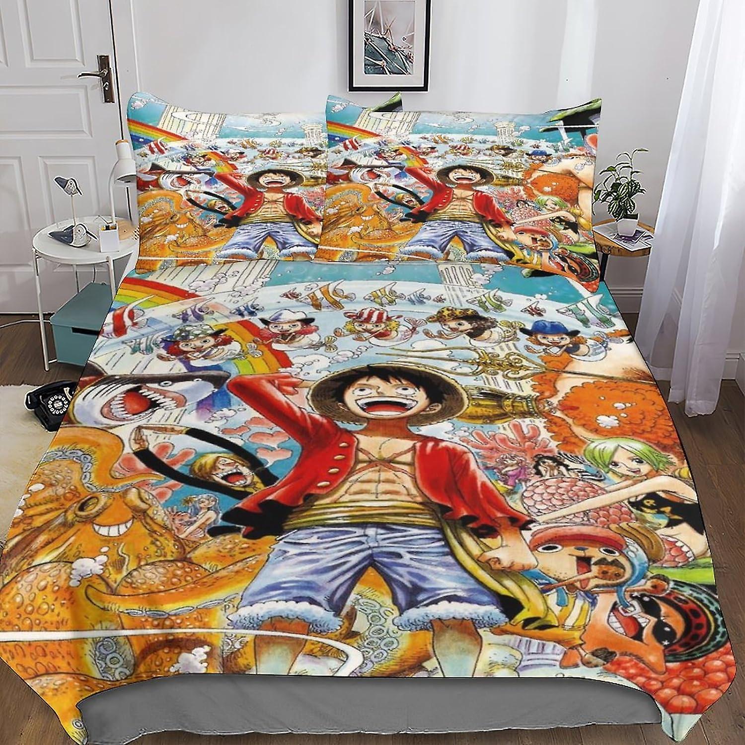 ONE Piece Premium Duvet Cover Set with Hidden Zipper Closure - Stylish 3D Print Microfiber Anime Bedding, Complete 3-Piece Set with Pillowcases, for B
