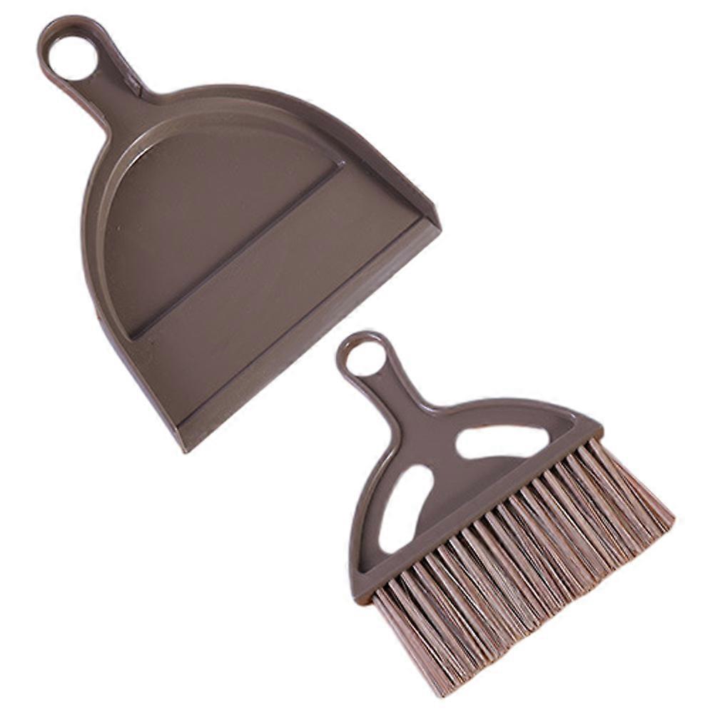 Cleaning Brush Set With Dustpan For Desktop Broom Mini Size Ideal For Office Cleaning 1 Set Coffee Color