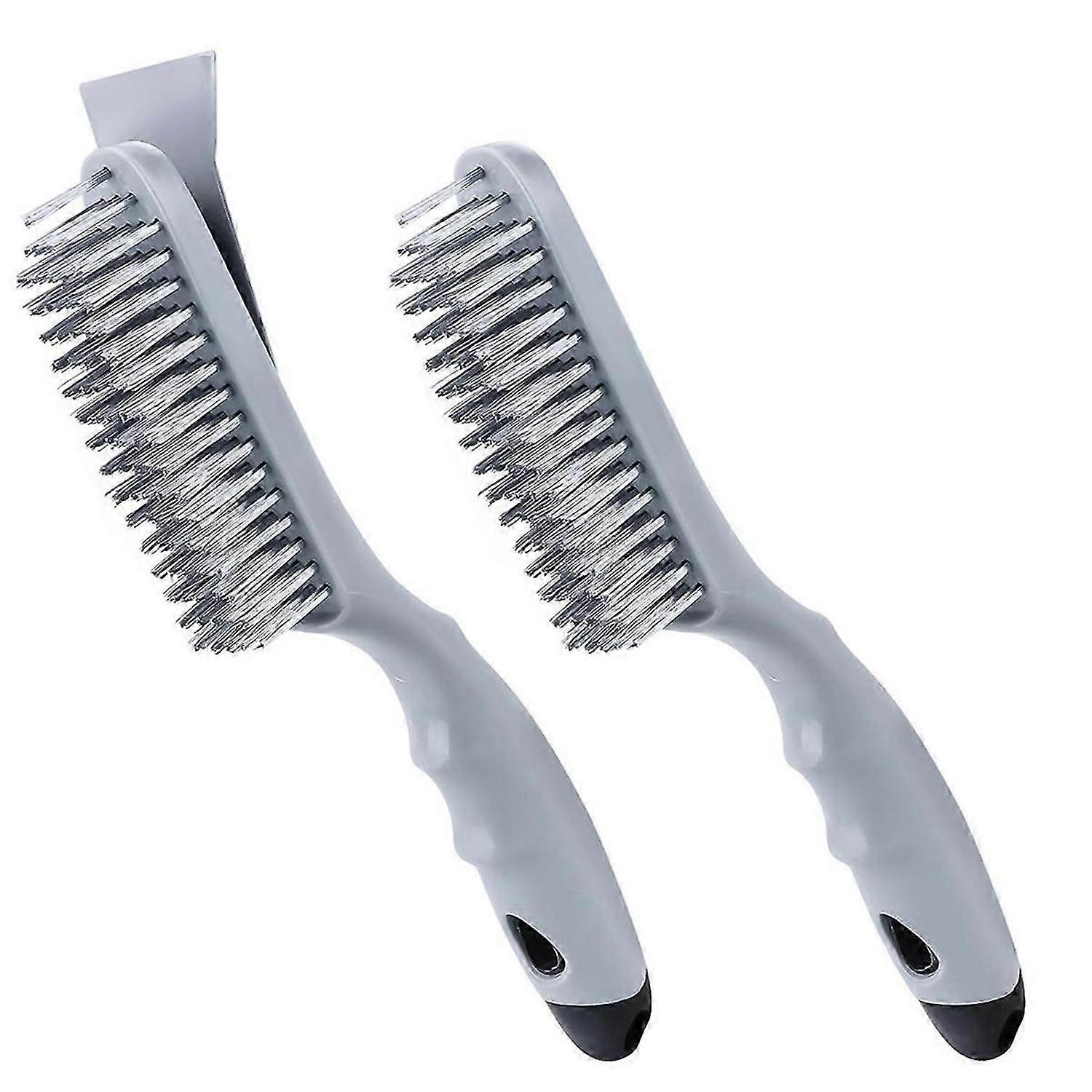 Stainless Steel Wire Brush Set 2Pcs, with Strong Handle & Metal Scraper,for Cleaning Welding Slag &