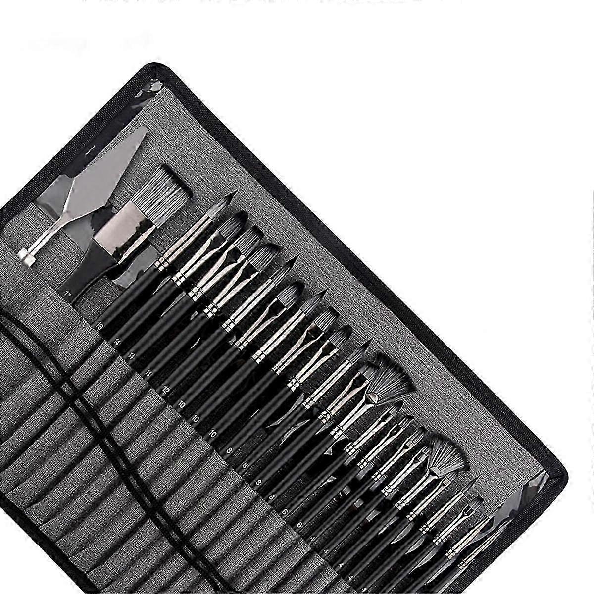 25piece Paint Brush Set,wooden Handled Brushes With Canvas Brush Case, Professional Oil, Acrylic And Watercolor Painting