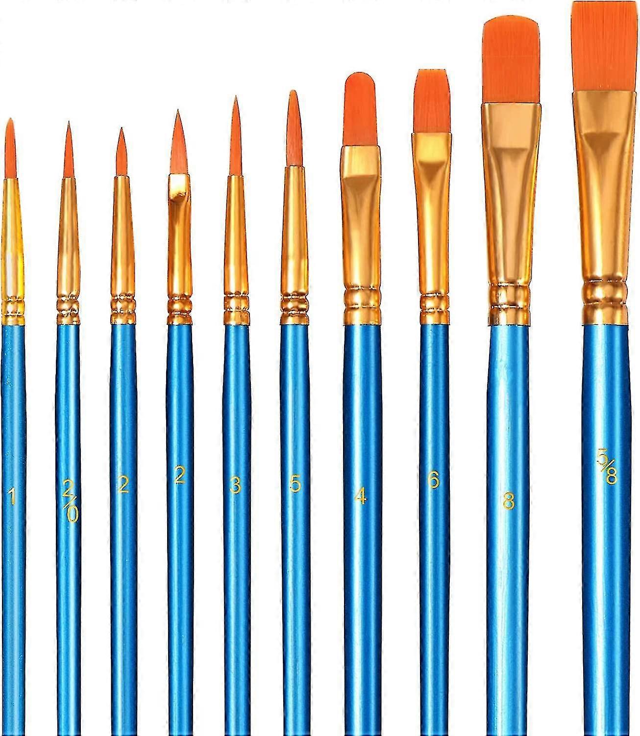 10-Piece Acrylic Paint Brush Set, Nylon Artist Brushes for Oil, Watercolor, Acrylic, Kids & Beginners, Blue