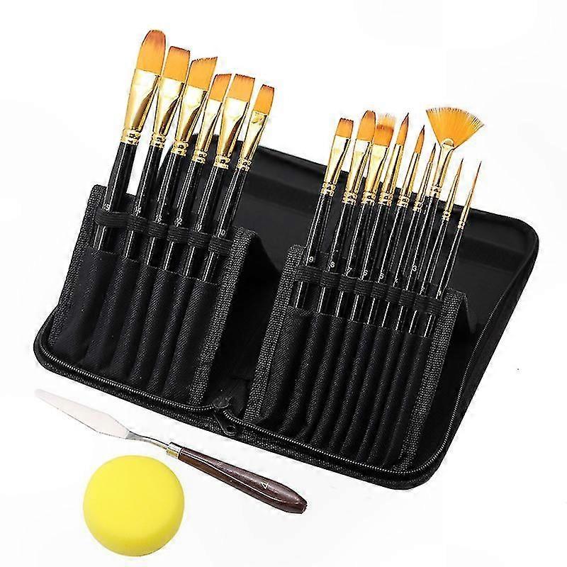 Art Brushes Set, 15PCS Professional Painting Tools for Acrylic, Watercolor, Gouache, Includes Palette, Knife, Sponge Ball