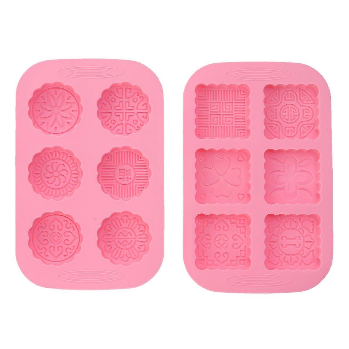 Pink Silicone Mooncake Mould Set Food Grade NonStick Baking Mold for Homemade Desserts 2pcs