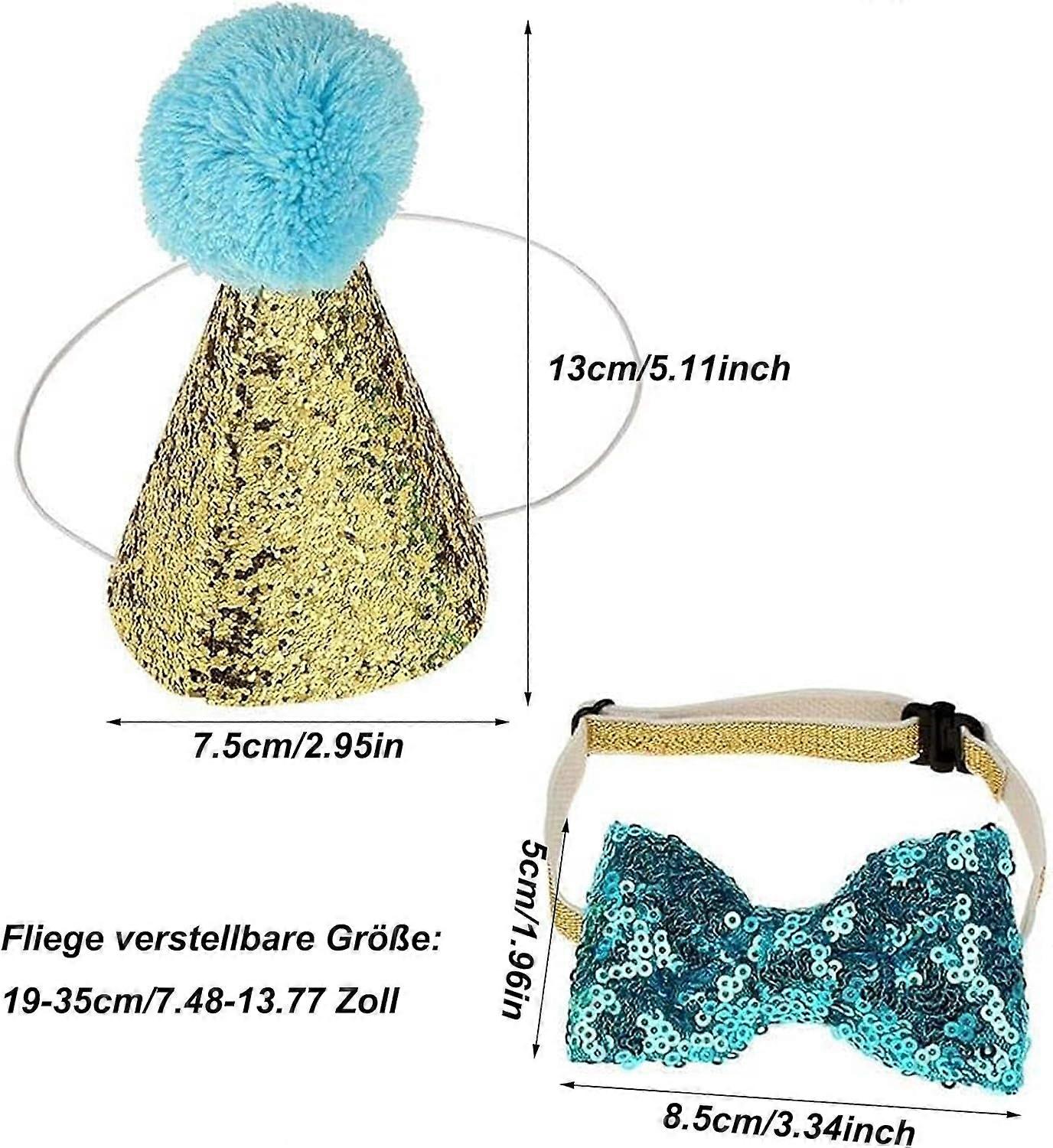 Birthday Hat Set For Pets 2Piece Bandana Bow Tie Glitter Cat Dog Birthday Hat Dog Cat Birthday Hats With Glitter For Cats Dogs Blue
