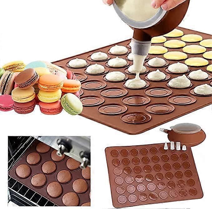 Macaron Silicone Baking Mat Mould Set, Non-Stick 48 Capacity Macaroon Baking Tray, French Macaroons Baking Set with Decorating Pen and 4 Nozzles for M