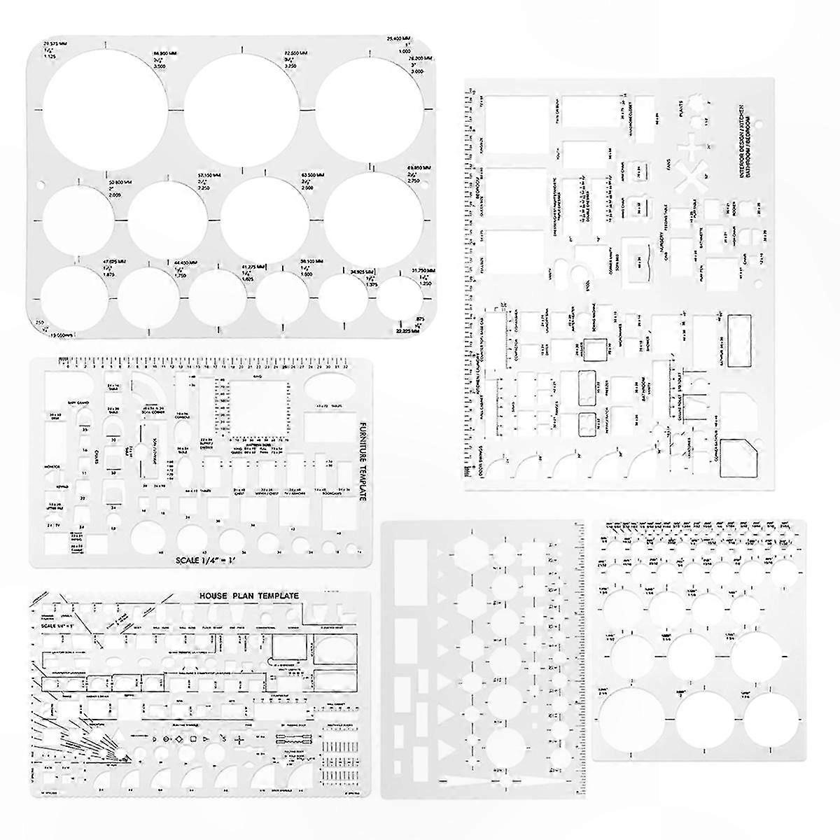 6-Piece Circle Template Set for Drafting, Geometric Stencils with Square Ruler for Formwork Drawing