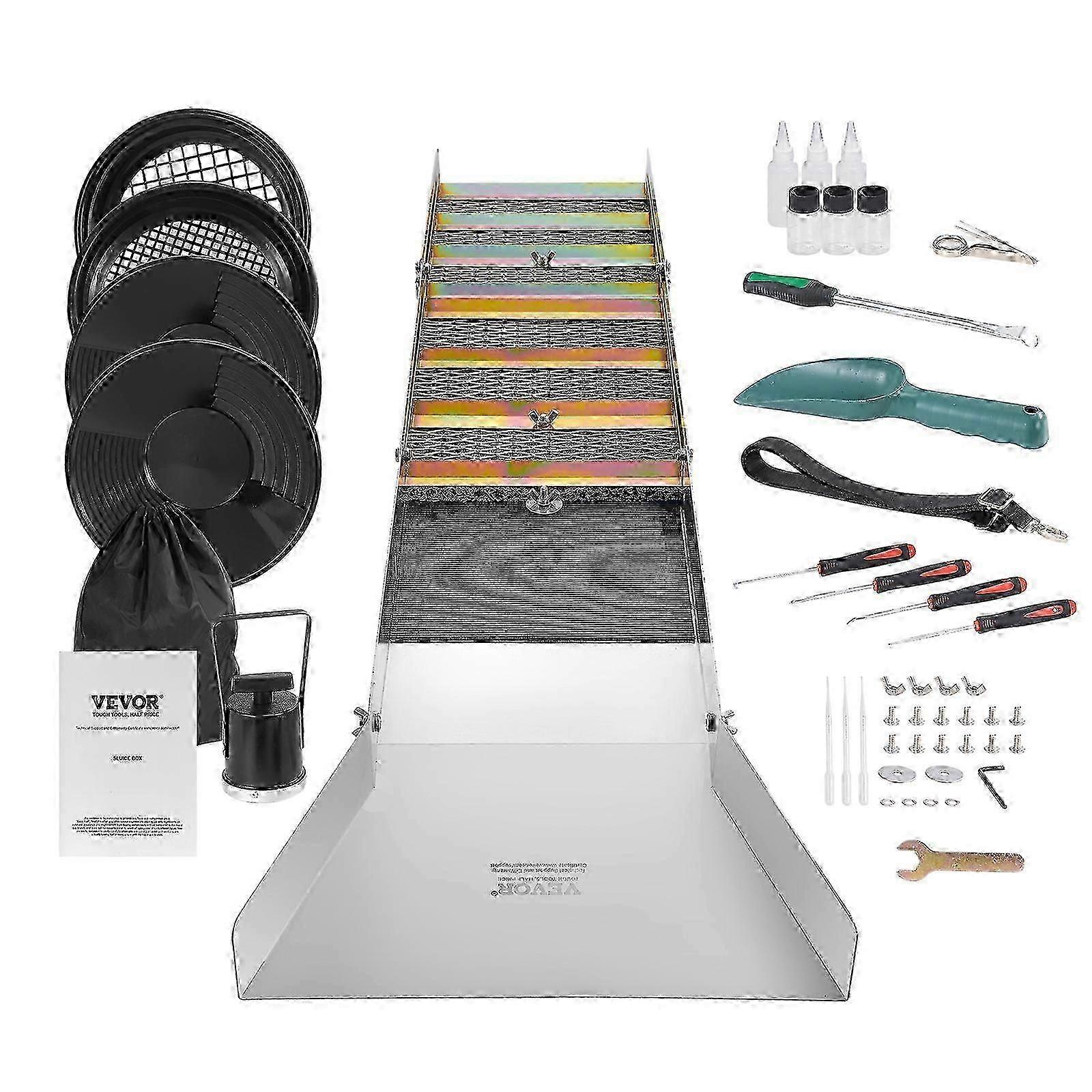 Complete Sluice Box Gold Panning Kit, 50" Folding Aluminum Alloy Gold Mining Equipment, 23 PCS Gold Prospecting Kit